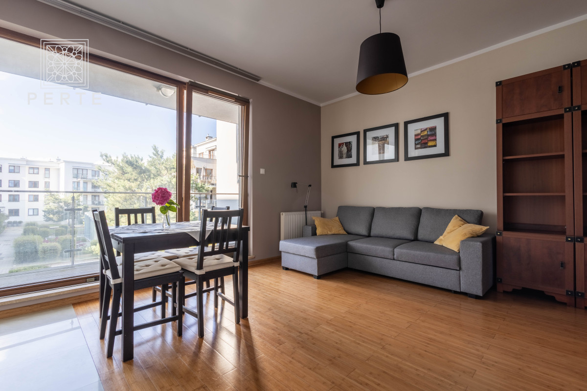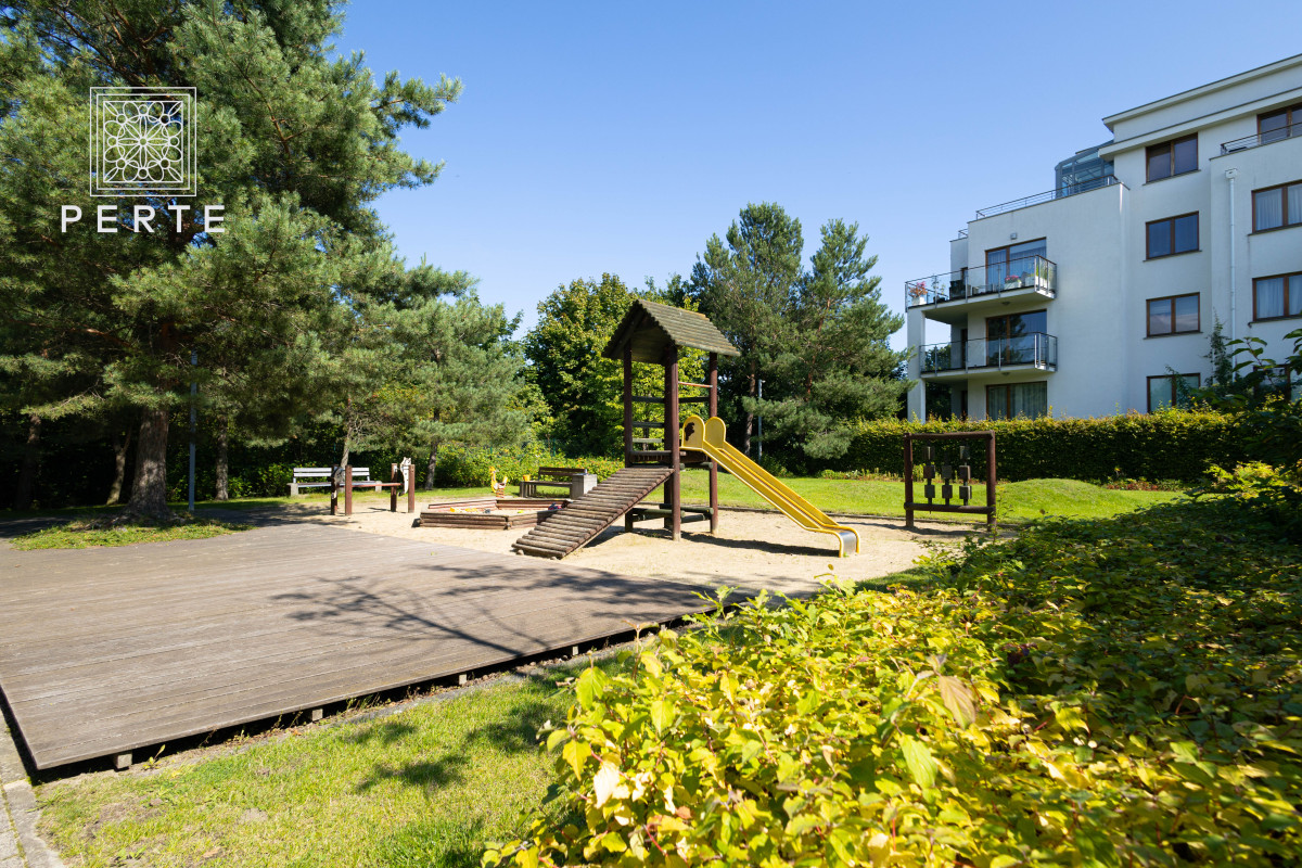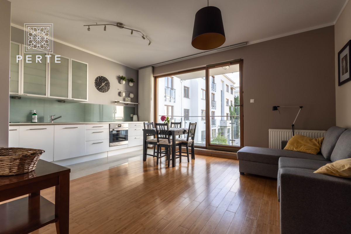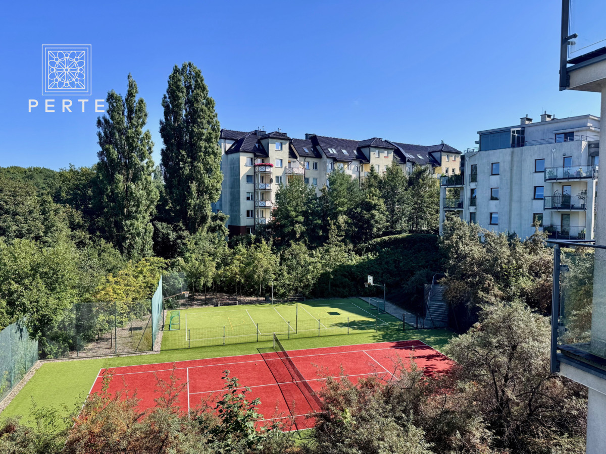 Mieszkanie zlokalizowane jest w nowoczesnym trzypiętrowym budynku o wysokim standardzie wykończenia (developer: Invest Komfort) oddany do użytku w 2009 r. wyposażony w windę, parking podziemny, strefę spa, fitness, kort tenisowy, boisko do koszykówki oraz plac zabaw, z ładnie zagospodarowanym i zadbanym dziedzińcem. Budynek otoczony jest terenami zielonymi. Miejsce idealne do zamieszkania dla osób ceniących sobie wysoki standard i spokój.